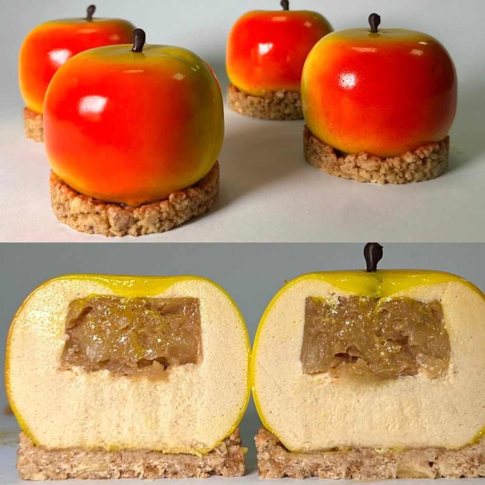 Опис:Бісквітні коржі, насичені чарівним тандемом ароматних яблук та ніжної кориці, поєднуються з шарами подрібненого волоського горіха, що втілюють смак далекого осіннього саду.